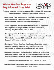 With the cold weather around the corner, our Homeless Response Team has developed a Winter Response Plan. The document can be viewed on our Homeless Response Team Page. Below is an example of some of the support available.
